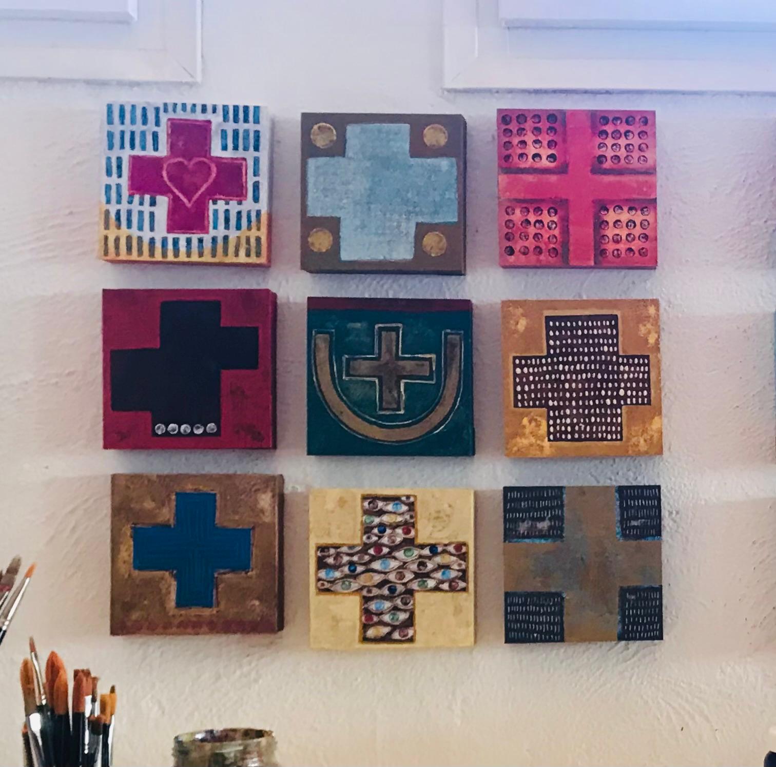 Técnica mixta sobre tabla montada sobre bastidor de madera.